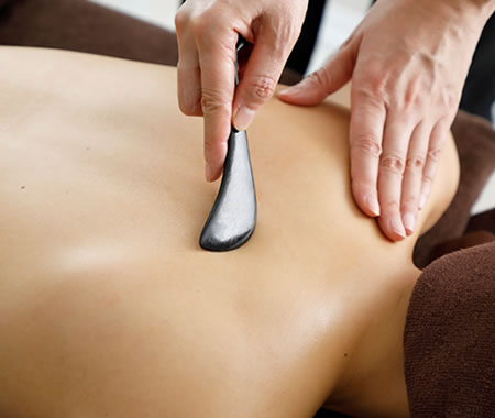 背中・肩こり撃退コース。漢方アロマオイルを使ってかっさとハンドでのダブルマッサージ。デコルテ、首回りのマッサージも入ります。